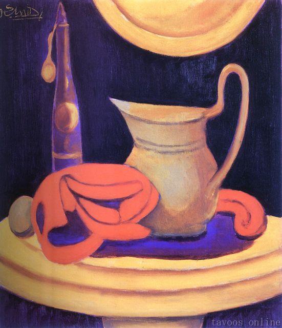 جواد حمیدی/ میز زرد/ رنگ و روغن روی بوم