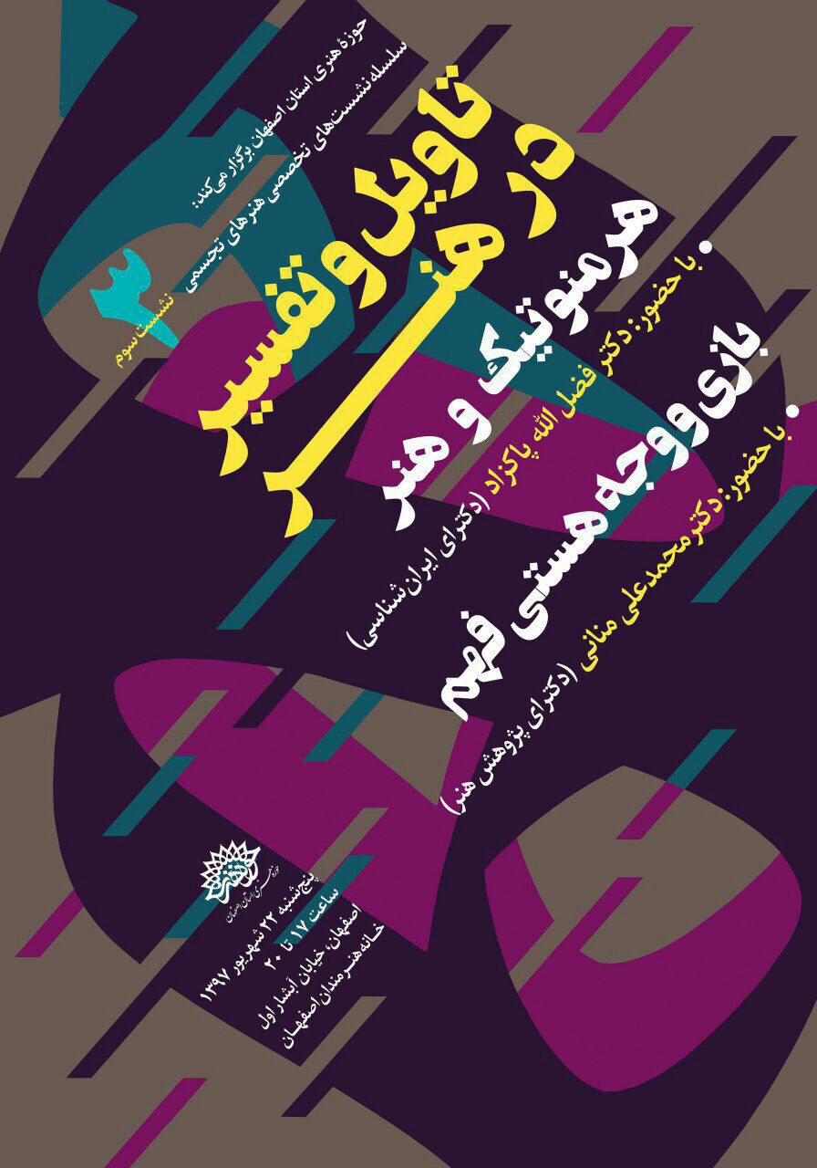 به گزارش روابط عمومی حوزه هنری استان اصفهان، این نشست تخصصی که توسط واحد تجسمی برگزار می شود در دو بخش اصلی به بیان مباحث خود می پردازد.