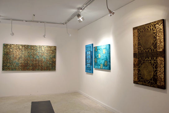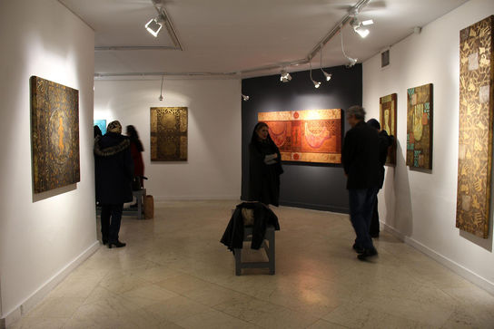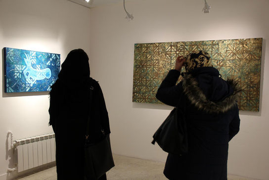 او با اشاره به بهره گرفتن از المان‌های معماری ایرانی گفت: پلان مسجد و مدرسه، کاشی‌کاری سلجوقی، اورسی‌های قاجاری و... به همراه نمادهای آیینی در آثار من دیده می‌شوند. رنگ‌های آثارم نیز از هنر ایرانی آمده است و فیروزه‌ای کاشیکاری‌ها، قرمز گلیم و قالی، طلایی و نقره‌ای بناهای مذهبی و... را می‌توان در نقاشی‌ها دید. پس از آن سعی کردم تابلوها را به حالت قدیمی دربیاورم و چون کار مرمت نیز انجام می‌دهم برایم راحت بود که این تابلوها را به فضای صد سال پیش ببرم. قصد من این بود که فضای قدیمی را به مخاطب القا کنم.