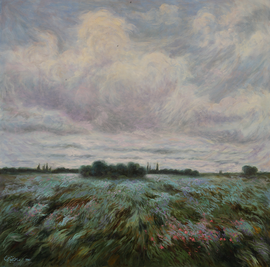 نقاشیای که در نگاه اولیه تنها یک منظره دل انگیز است، اما در نگاه عمیق تر نقاشی است که سرشار از حال هوای خود هنرمند و احوال پیرامون اوست. اتفاقی که رخ داده است و نشانههای آن در تابلویی در نظر ما حاضر میشود. رویدادی که هنرمند آن را هنرمندانه میبنید ودر نهایت دلفریبی نقاشی میکند.