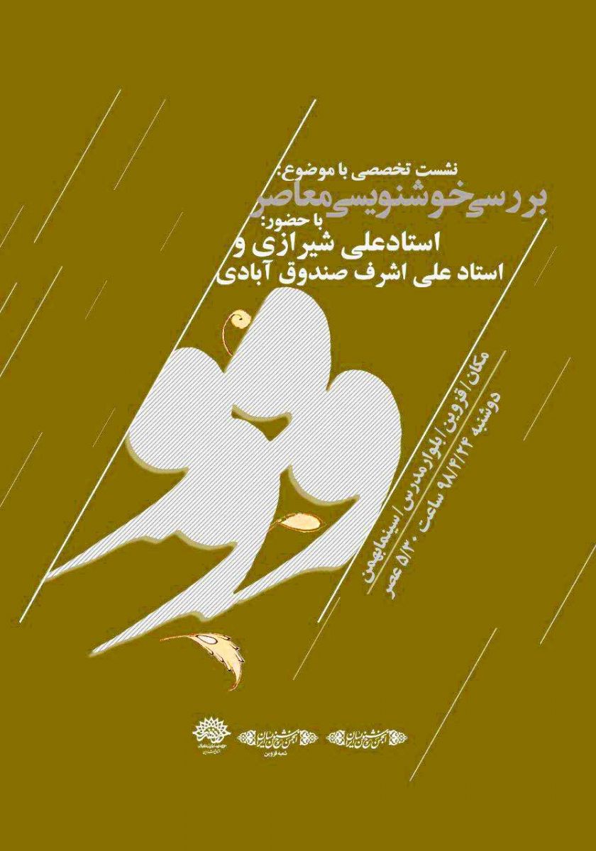نشست تخصصی بررسی خوشنویسی معاصر با حضور استادان مطرح کشور و جمعی از هنرمندان برگزار می شود.
